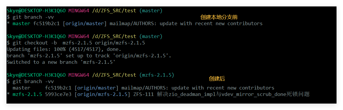 #创建一个与远程origin/mzfs-2.1.5对应的本地分支