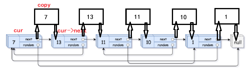 copy->random = cur->random->next;