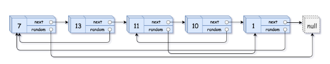 输入:head = [[7,NULL],[13,0],[11,4],[10,2],[1,0]]