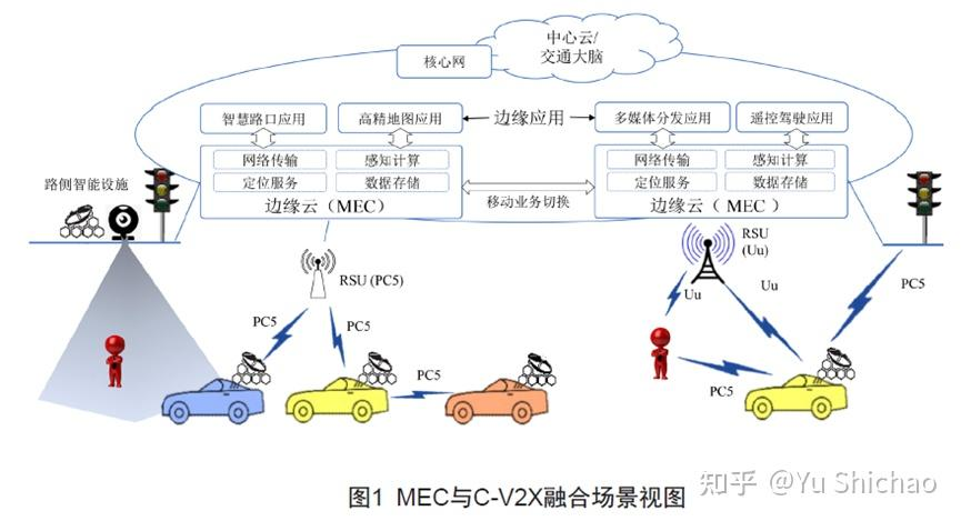 - RSU + MEC:给路灯装上"大脑" 早期的 RSU 只是一个"传话筒"(把红绿灯信号广播出去)。现在的 RSU 是"智能体",这离不开 MEC(多接入边缘计算)。