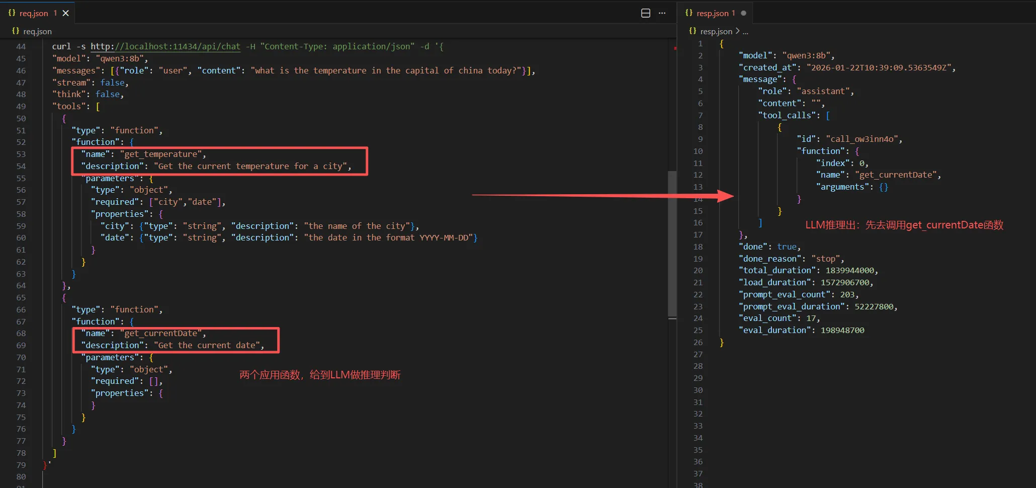 ② 应用拿这个推理信息,去调用准备好的get_currentDate函数,假设结果是2026-01-22。