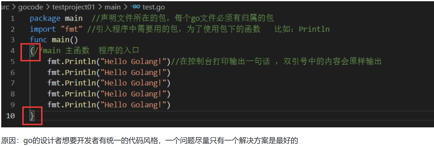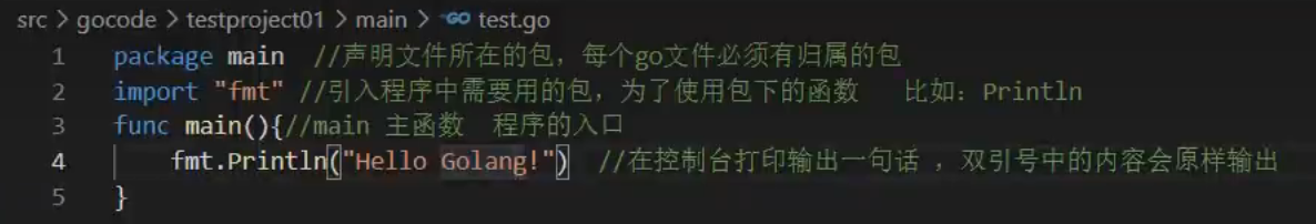 fmt.Println("Hello Golang!") //在控制台打印出引号中的内容