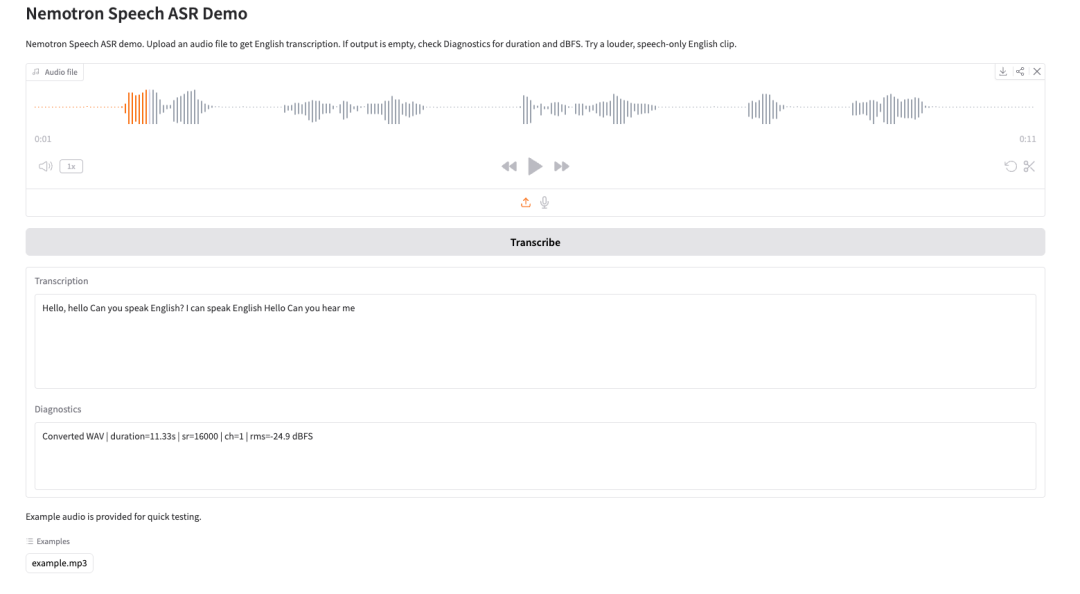 5. Nemotron-Speech-Streaming-ASR:自动语音识别 Demo
