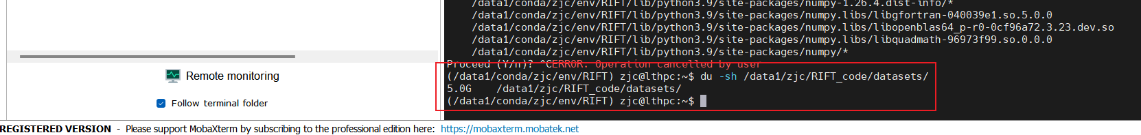 比如我想要查看:"/data1/zjc/RIFT_code/datasets/"这个的文件夹大小: