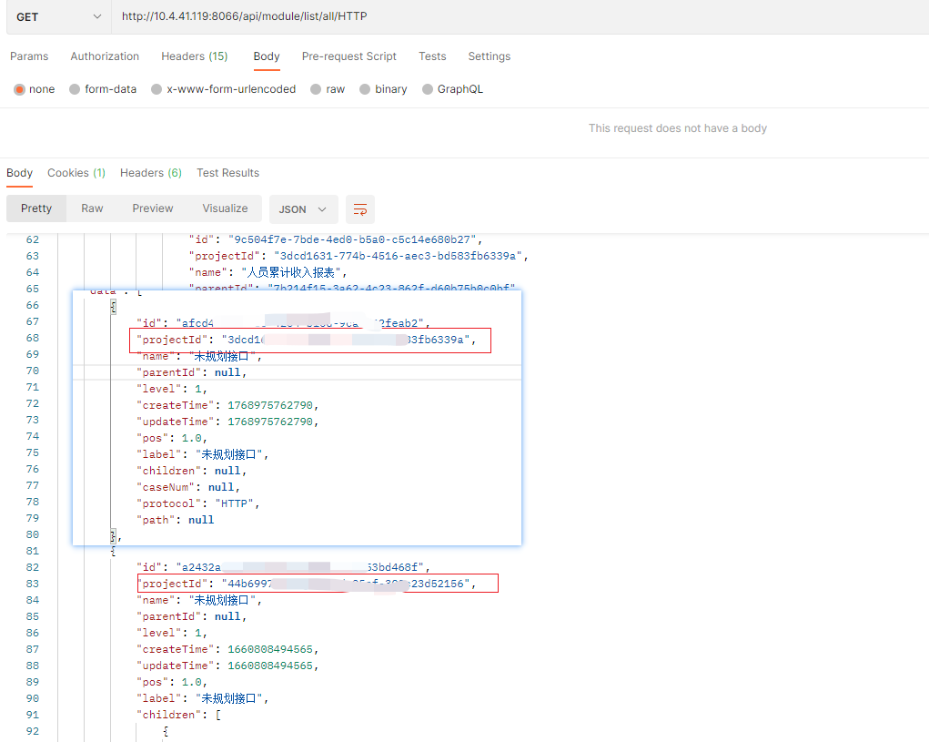 三、PostMan请求示例(每个项目默认会有一个未规划接口)