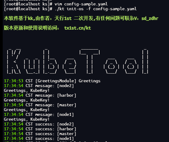 该命令kt会根据配置文件自动判断操作系统和架构以完成所有节点的初始化配置和依赖安装。