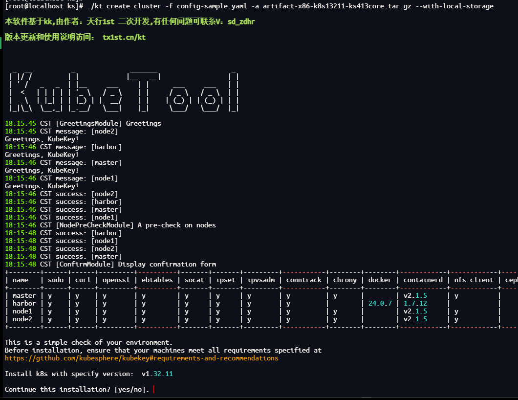 ./kt create cluster -f config-sample.yaml -a artifact-x86-k8s13211-ks413core.tar.gz --with-local-storage