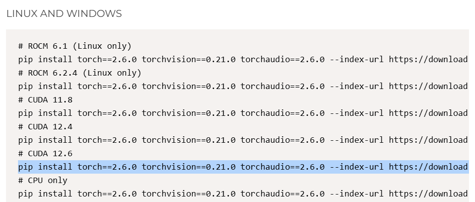 - 那这样是否可以直接用Pytorch官网中的2.6.0版本进行安装呢?(PS. 相应cuda版本为12.6),具体步骤如下图可见:(所以在NVIDIA DGX Spark的cuda为13.0的版本上,安装Pytorch官方的2.6.0版本是否就可以了呢?如果安装可以使用,麻烦留个言哈!)