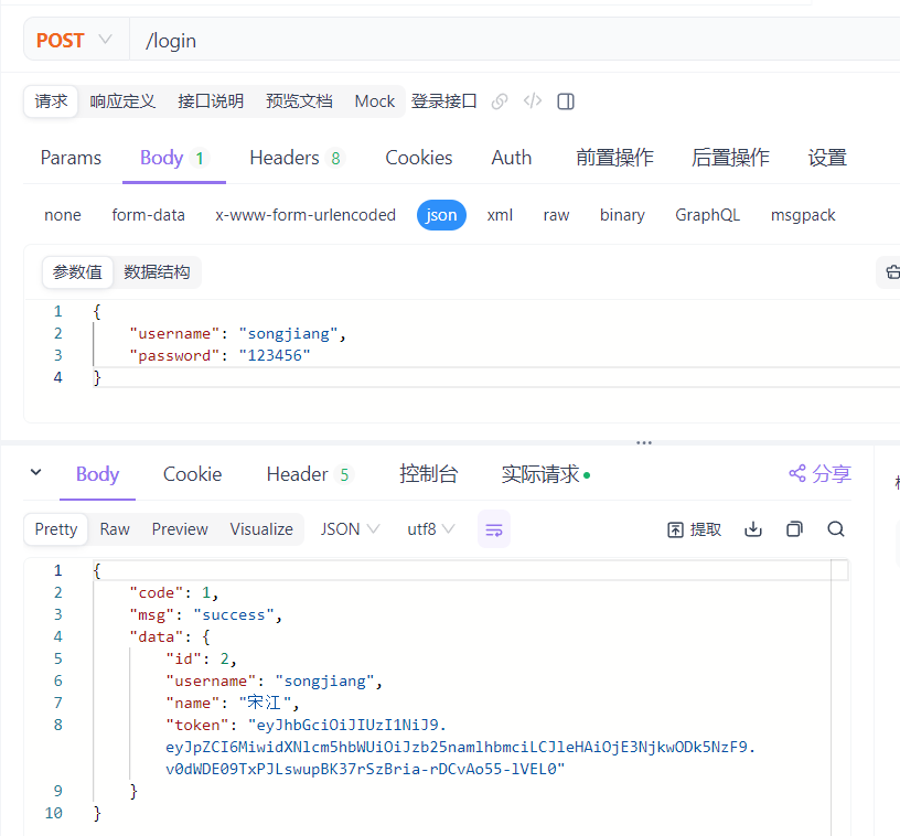 用户登录成功后,系统会下发JWT令牌,然后在后续的每次请求中,都需要在请求头header中携带到服务端,请求头的名称为 token,值为 登录时下发的JWT令牌。 如果检测到用户未登录,则直接响应 401 状态码 。