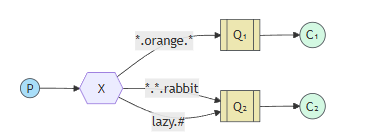 * TOPIC("topic"): 通配符模式,把消息交给符合`routing pattern`的队列