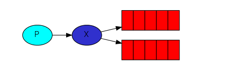 X:Exchange,接收生产者的消息,然后把消息递交给 与 routing key 完全匹配的队列。