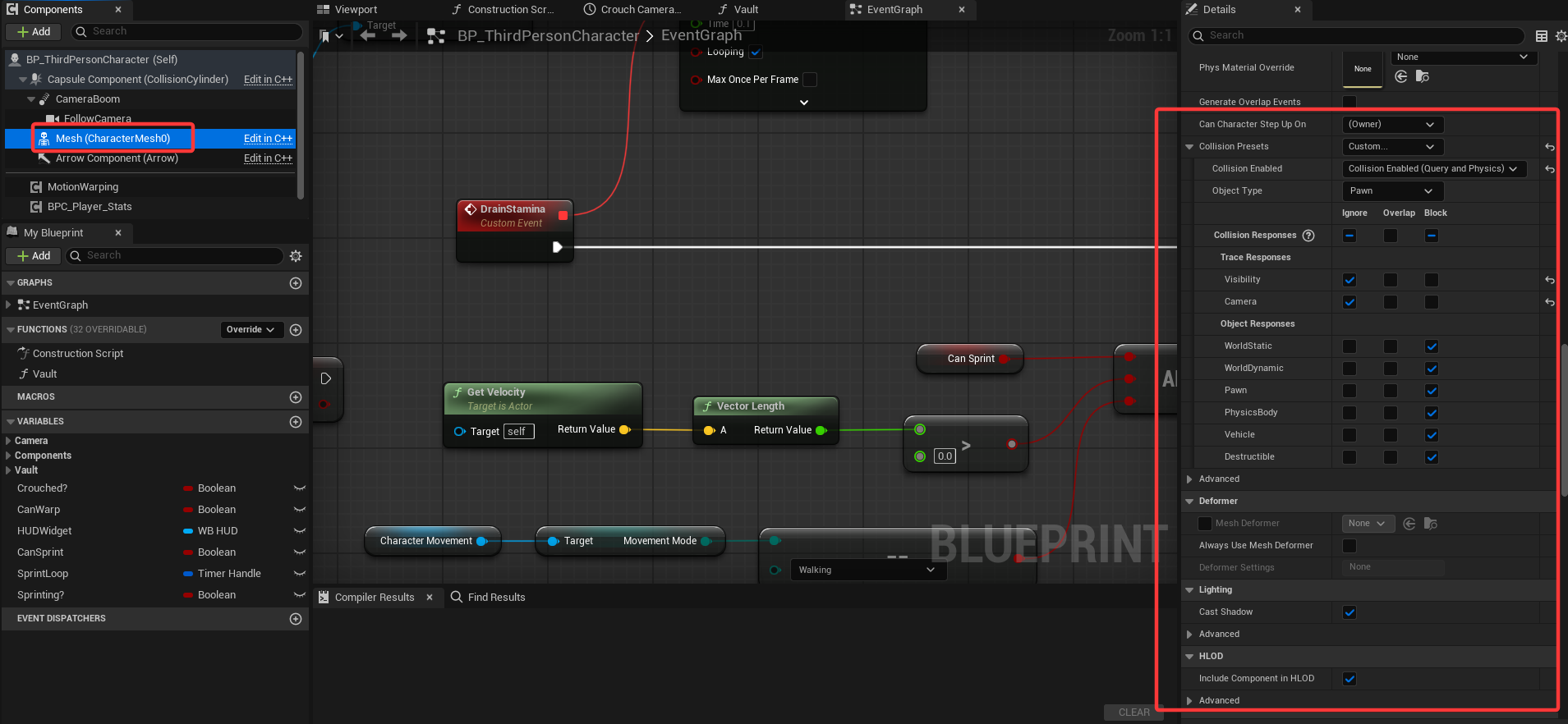 然后在敌人蓝图中将 CapsuleComponent 的 Object Type 设置为 Enemy,并使用 EnemyPawn 预设。