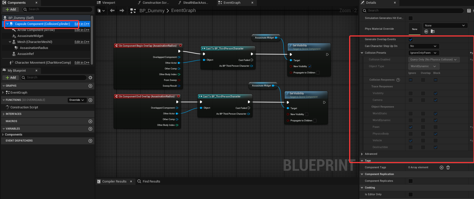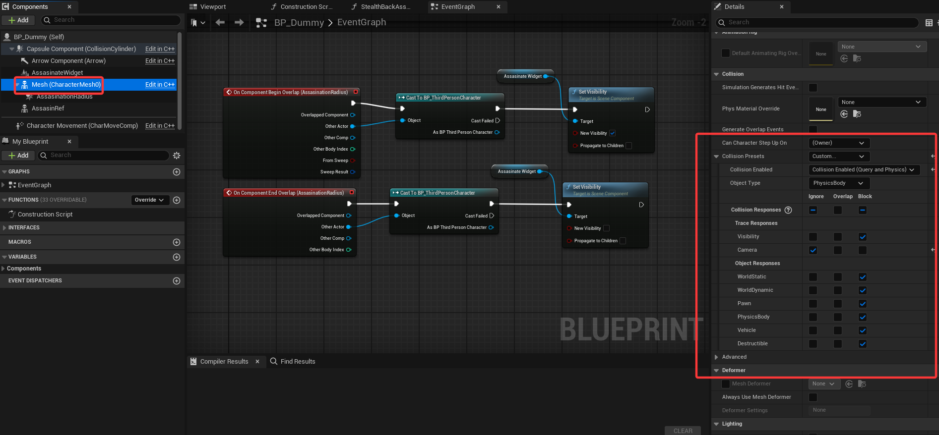 CapsuleComponent 或感知碰撞体(如 AssassinationRadius)
