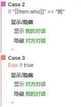 在中继器每项加载时,我们需要判断每一行是谁说的,如果who列的值等于我,就是我说的,所以显示蓝色矩形,隐藏灰色矩形;如果who列的值不等于我,就是机器人说的,我们就显示灰色矩形,隐藏蓝色矩形。