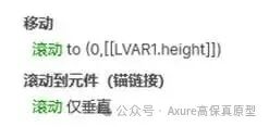 完成之后,我们要用移动的交互,将动态面板内的锚点元件移动到中继器表格的下方,然后用滚动到元件的交互,让动态面板的滚动条滚动到最下方锚点的位置。