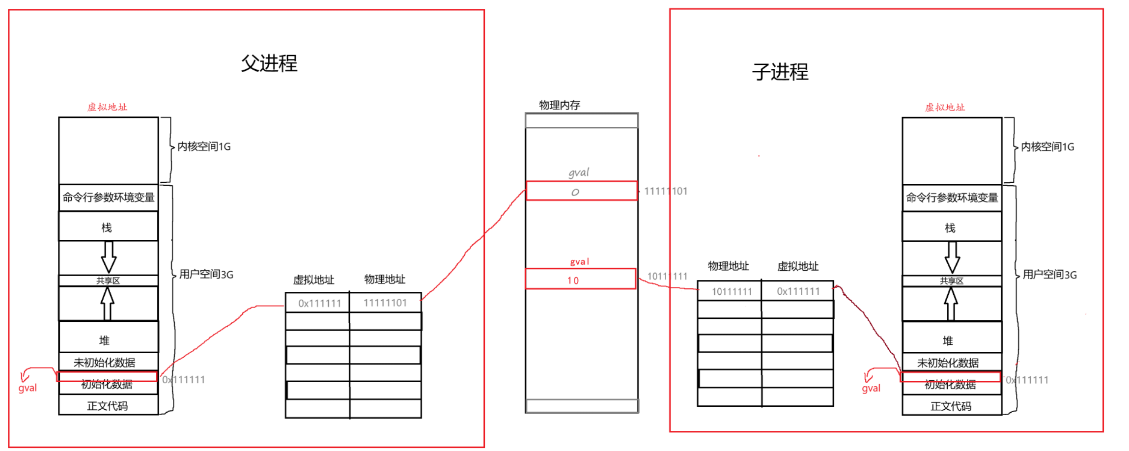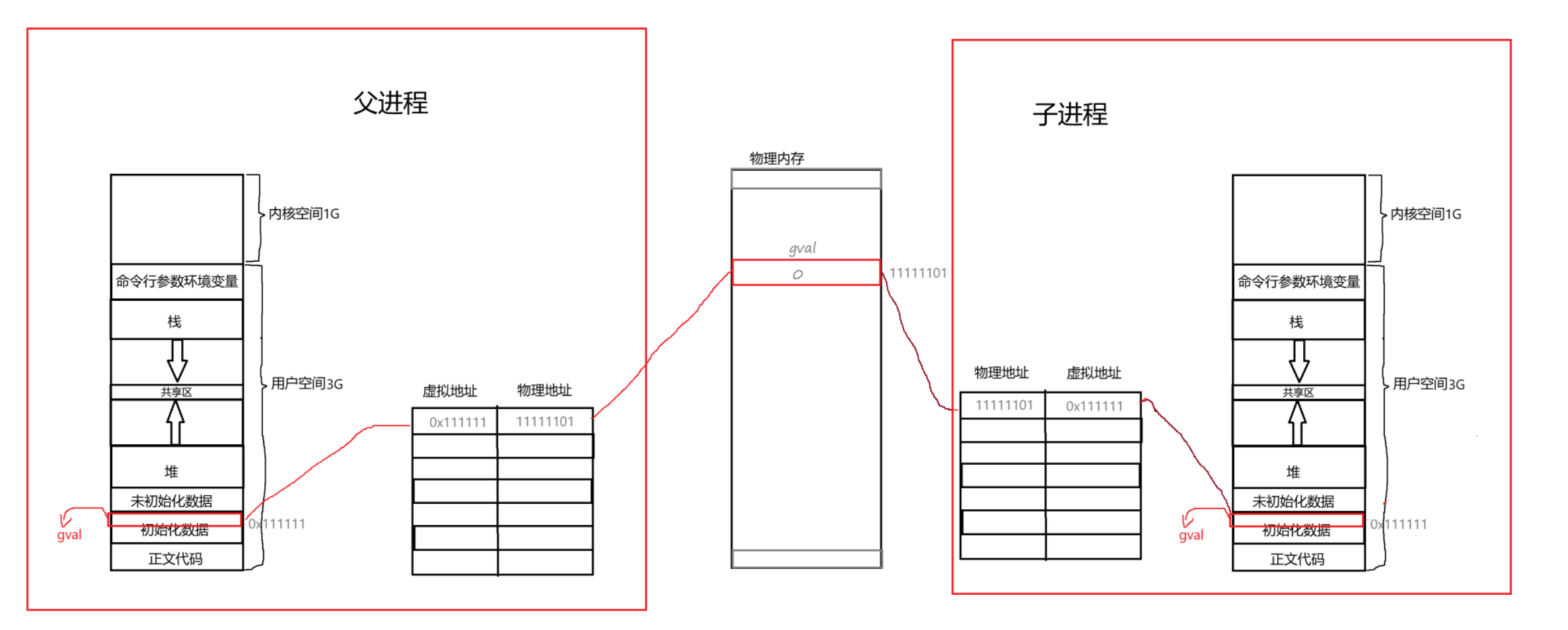 printf("父进程:gval:%d,&gval:%p,pid:%d,ppid:%d\n",gval,&gval,getpid(),getppid());