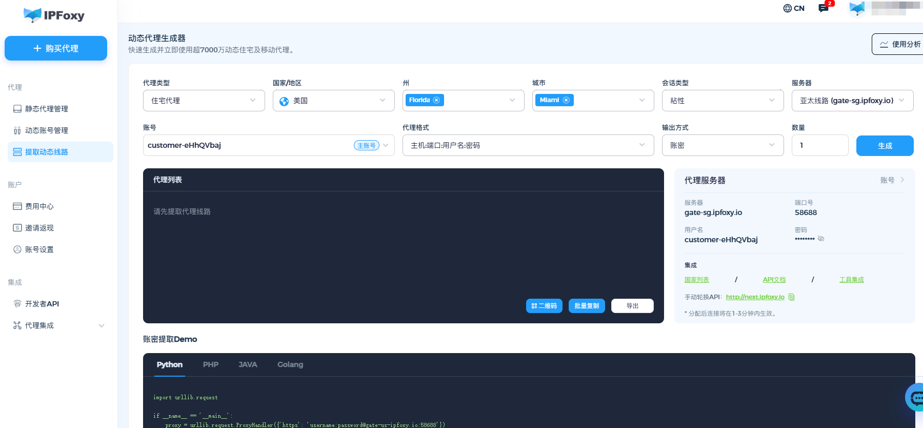 抓取中代理建议选择动态轮换的IP服务,比如IPFoxy提供的动态住宅IP代理,可以快捷地结合脚本爬取,以下是其动态IP池测试下来的效果测评: