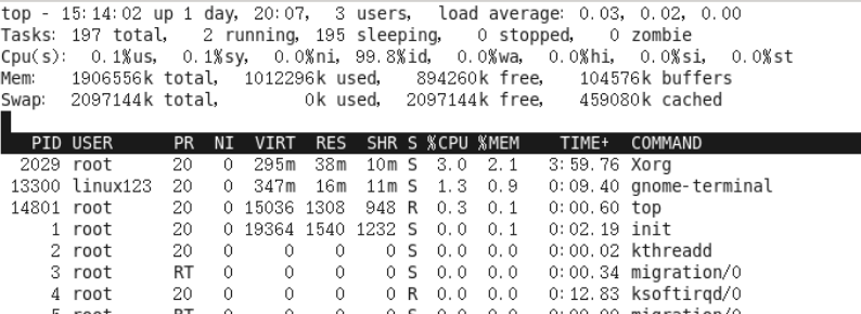 - 1:当服务器拥有多个CPU的时候可以使用"1"快捷键来切换是否显示CPU的详细信息。