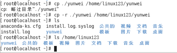 注意:Linux在复制过程中是可以重新对新文件的位置进行重命名的,但是如果不是必须的需要,则建议保持前后名称一致。 - 案例:使用cp命令来复制一个文件夹