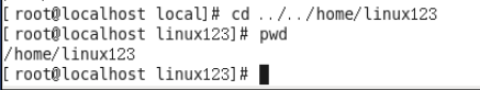 案例:在当前/usr/local下,需要使用相对路径切换目录到home目录下的linux123