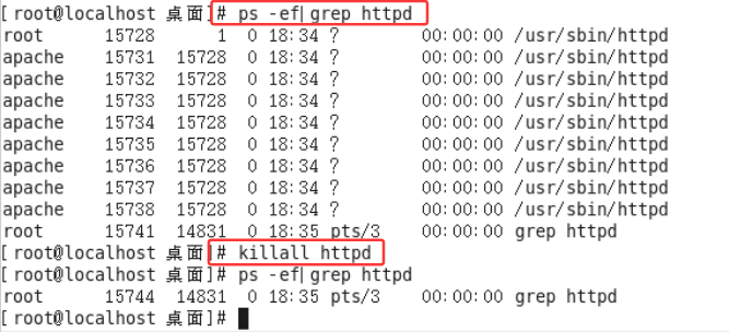 - 15、使用已学命令杀死Apache进程。 #killall httpd
