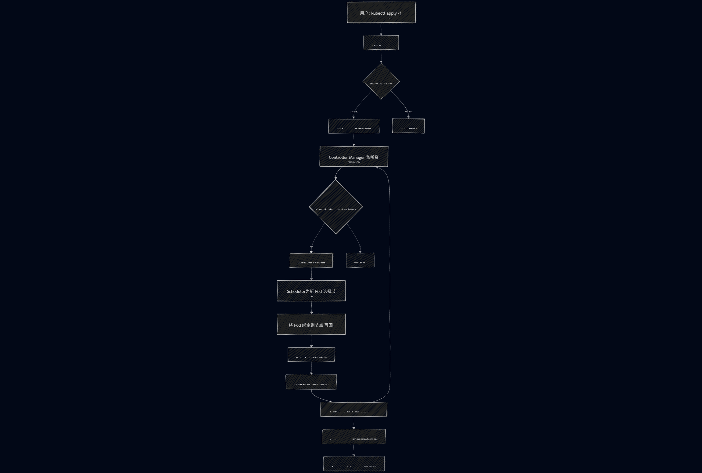 - Controller Manager 中的各类控制器(如 Deployment Controller、ReplicaSet Controller)持续监听 etcd 中的资源变化。