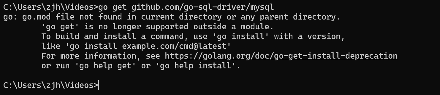 如果想要全局安装使用 go install github.com/go-sql-driver/mysql@latest,必须指定版本
