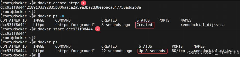 [root@docker ~]# docker ps -a # create 的容器状态为 Created