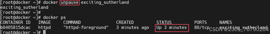 [root@docker ~]# docker start eb1aa0ca86b2 # 启动容器