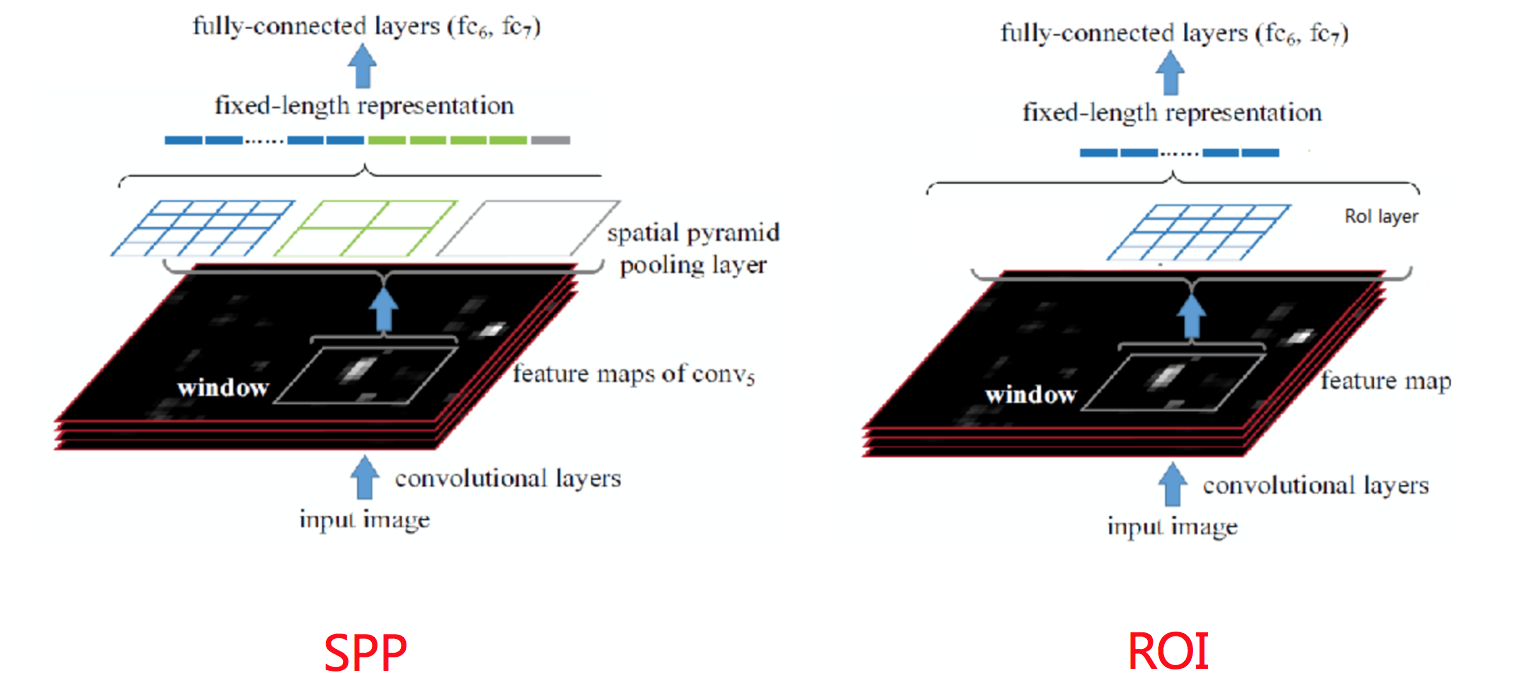 - RoI pooling能进行反向传播,SPP层不适合
