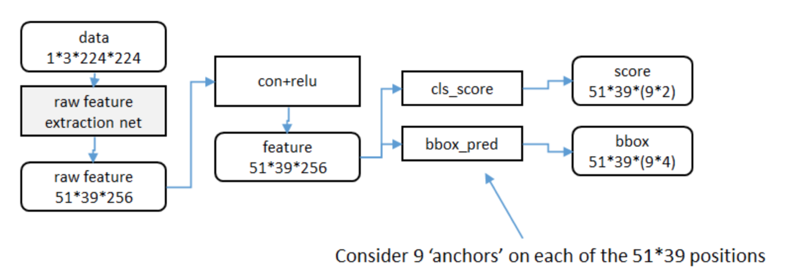 - 生成anchors -> softmax分类器提取fg anchors -> bbox reg回归fg anchors -> Proposal Layer生成proposals