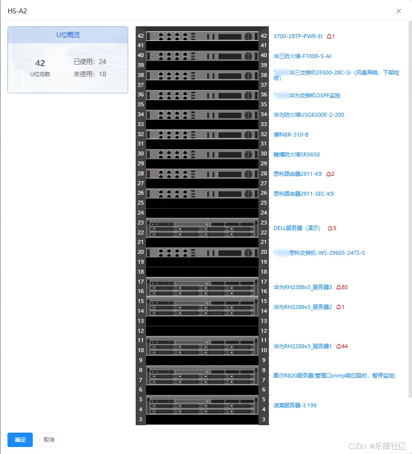 可视化机柜展示U位使用情况