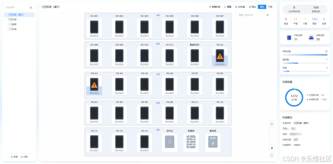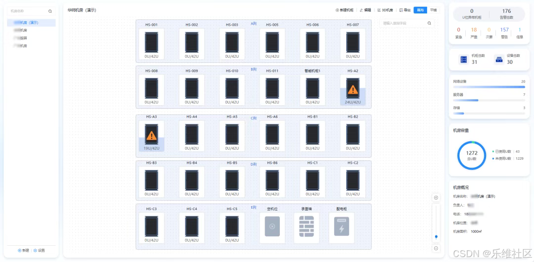 数据中心运维管理中,传统的机房管理常常面临设备繁多、管理混乱、故障排查困难、空间资源浪费等问题,就像在开 "盲盒" 一样充满不确定性;这些问题不仅影响运维效率,更可能对业务连续性造成潜在风险。乐维CMDB的机房视图,通过全局展示、精细化U位管理、3D机房大屏等核心能力,整合设备资源、告警状态、负责人信息等多维数据,打破传统管理的信息孤岛,实现机房从布局规划到运行监控的全流程可视化管控,为数据中心安全稳定运行提供有力支撑,让机房管理从 "雾里看花" 变为 "透明可视",彻底告别管理难题。