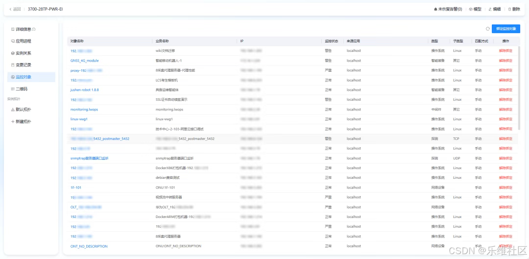 监控对象:查看资产绑定的监控对象名称、业务名称、IP、监控状态、来源应用等