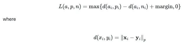 损失函数是 Triplet Margin Loss。公式里 a 代表锚文本嵌入,p 代表正样本嵌入,n 代表负样本嵌入。