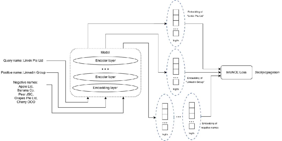 输入包括一个查询、一个正匹配、一组负样本列表。