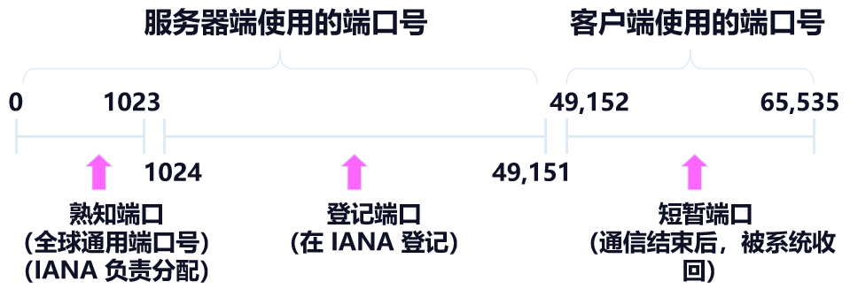 | 短暂端口 | 49152-65535 | 用户 | 客户端临时端口 | 客户端连接时动态分配 |