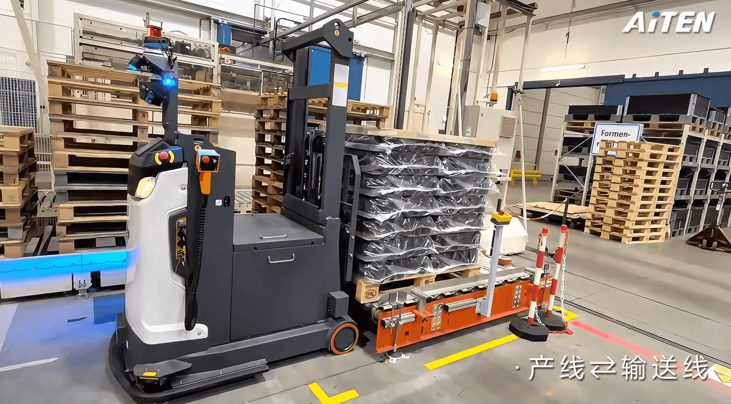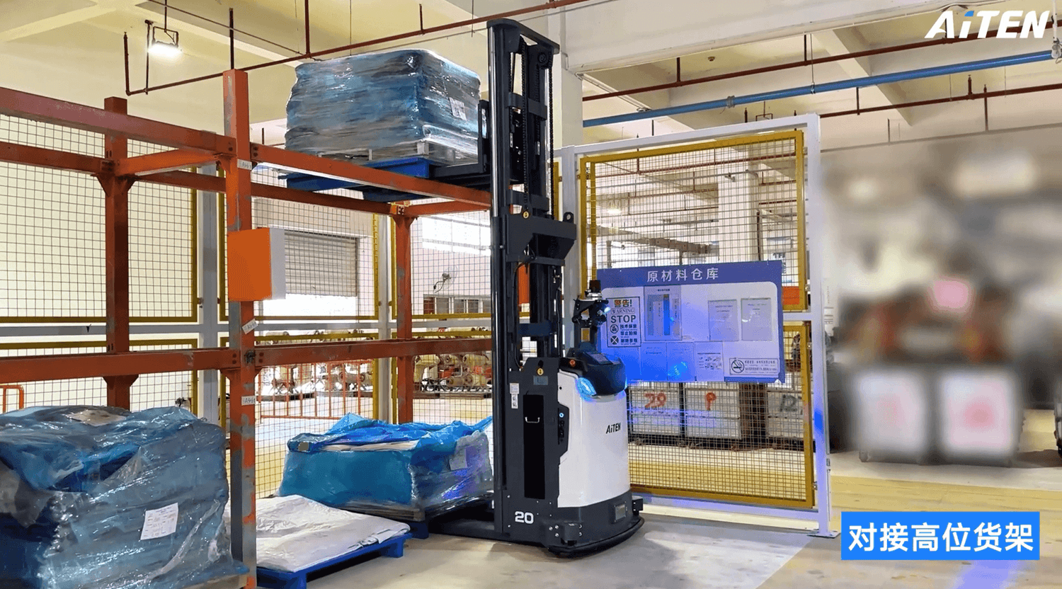 在最近的一个项目中,AiTEN 交付了一套解决方案,其中包括AE15平衡重式堆垛机。该自主叉车与生产线自动化设备对接,显著提高了内部物流效率。
