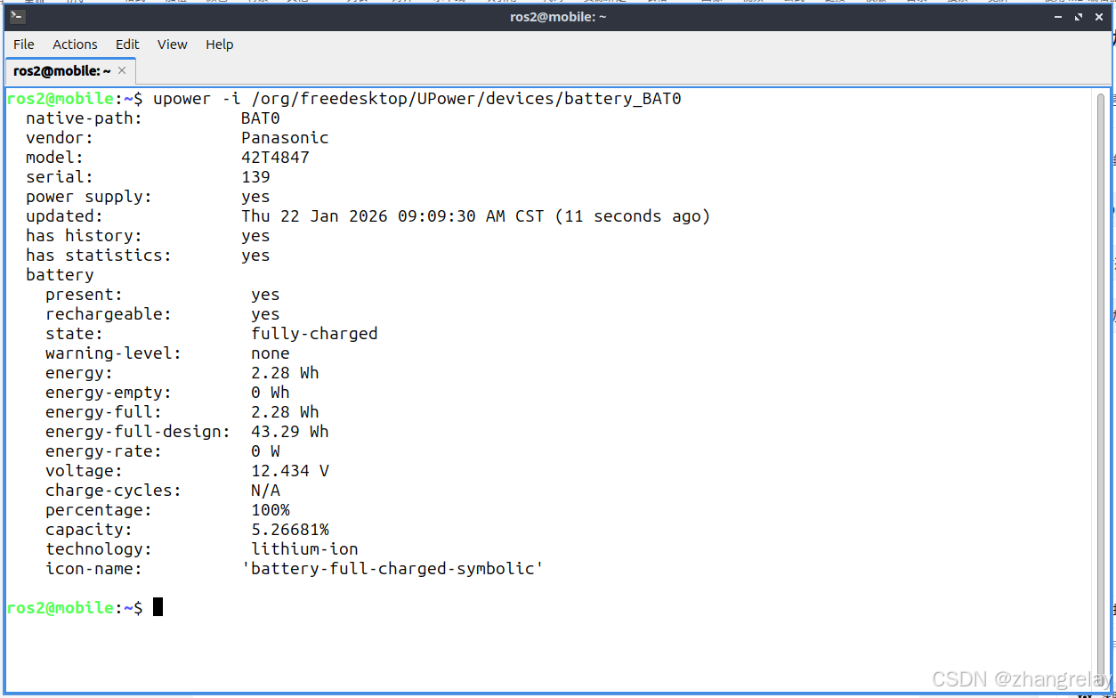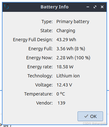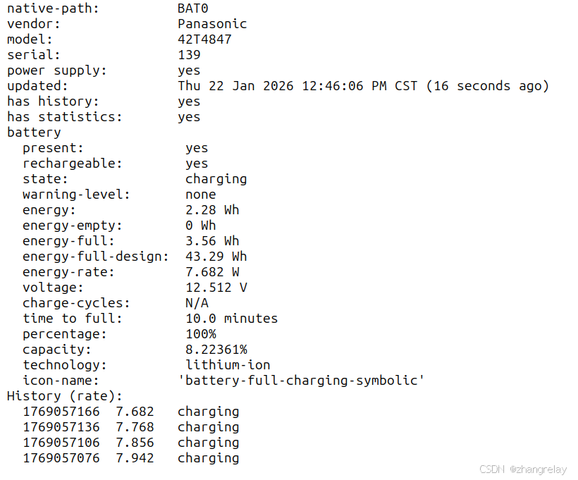 sudo upower -i /org/freedesktop/UPower/devices/battery_BAT0人工核验:无需sudo,直接upower -i /org/freedesktop/UPower/devices/battery_BAT0