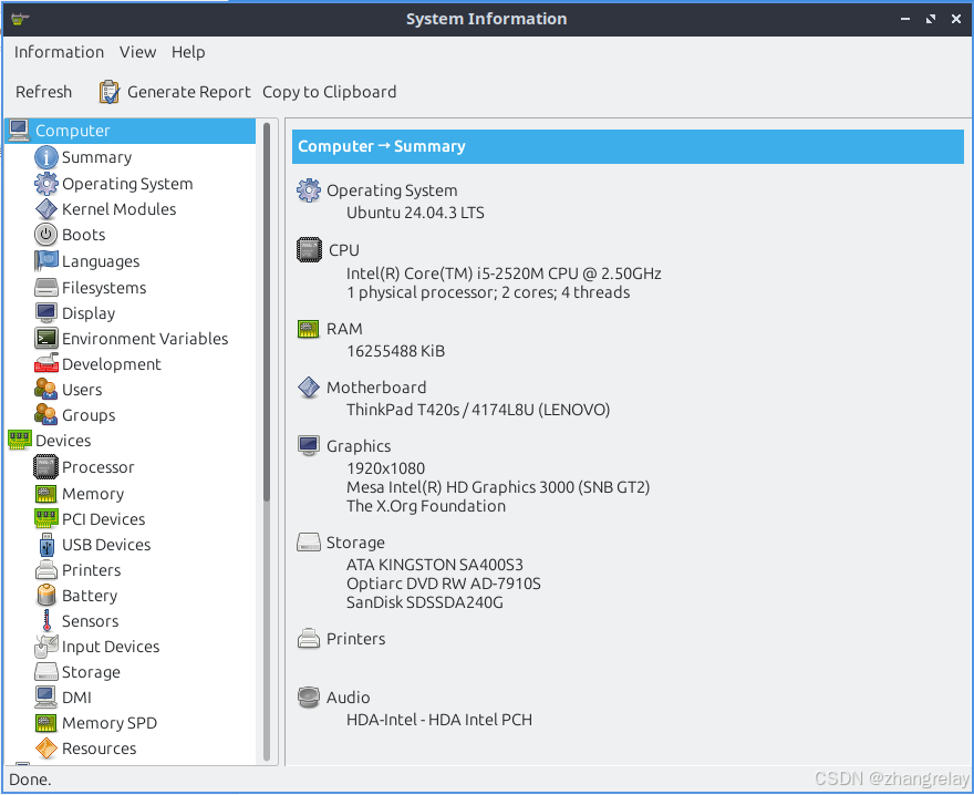 机型年份 核心依赖 安装命令 2011 年前 tp-smapi-dkms sudo apt install tlp tlp-rdw tp-smapi-dkms2011 年后(T420/X220+) acpi-call-dkms sudo apt install tlp tlp-rdw acpi-call-dkms安装后启用服务并加载模块: 查阅系统详细参数:
