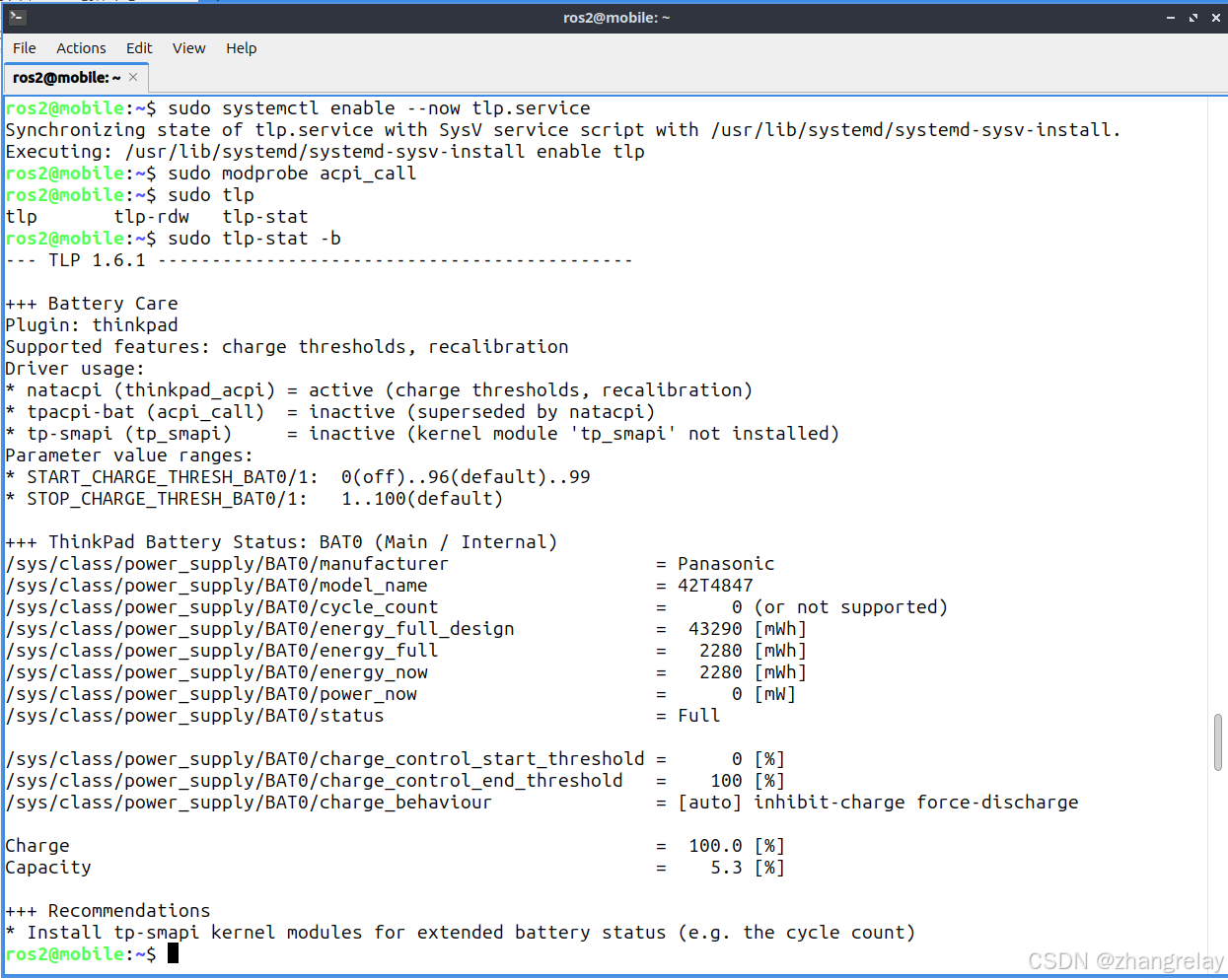ros2@mobile:~$ sudo systemctl enable --now tlp.service