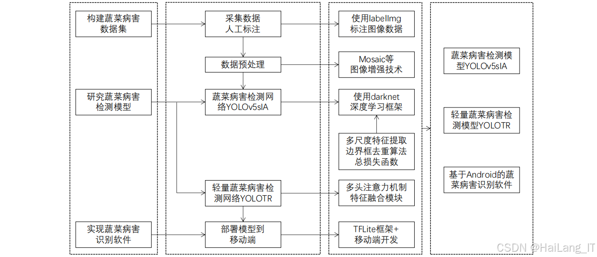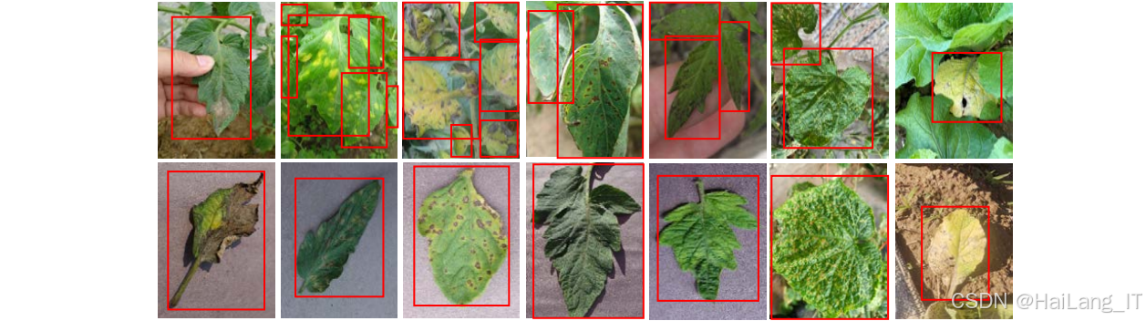 在基于深度学习的蔬菜病害检测方法研究中,数据集构建是基础而关键的一步。高质量的数据集能够有效提升模型的训练效果和检测性能。通过继承PyTorch的Dataset类,创建一个自定义的蔬菜病害数据集类VegetableDiseaseDataset。该类能够根据图像路径和标签路径,自动加载图像和对应的标注信息。在初始化方法中,指定图像路径、标签路径和数据增强方式,确保数据集的灵活性和可扩展性。在__getitem__方法中,实现了图像和标注的加载与处理逻辑。通过OpenCV读取图像,并将其转换为RGB格式,确保颜色信息的准确性。然后,解析XML格式的标注文件,提取病害的类别和边界框信息,并将边界框坐标转换为YOLO格式,以便模型训练。应用数据增强操作对图像和标注进行同步变换。数据增强是提高模型泛化能力的重要手段,通过随机调整图像的亮度、对比度、旋转角度等,模拟不同环境条件下的蔬菜图像,增加数据集的多样性和规模。本代码使用albumentations库实现数据增强,支持多种变换操作,如调整大小、随机亮度对比度、随机旋转、水平翻转、垂直翻转和模糊等。