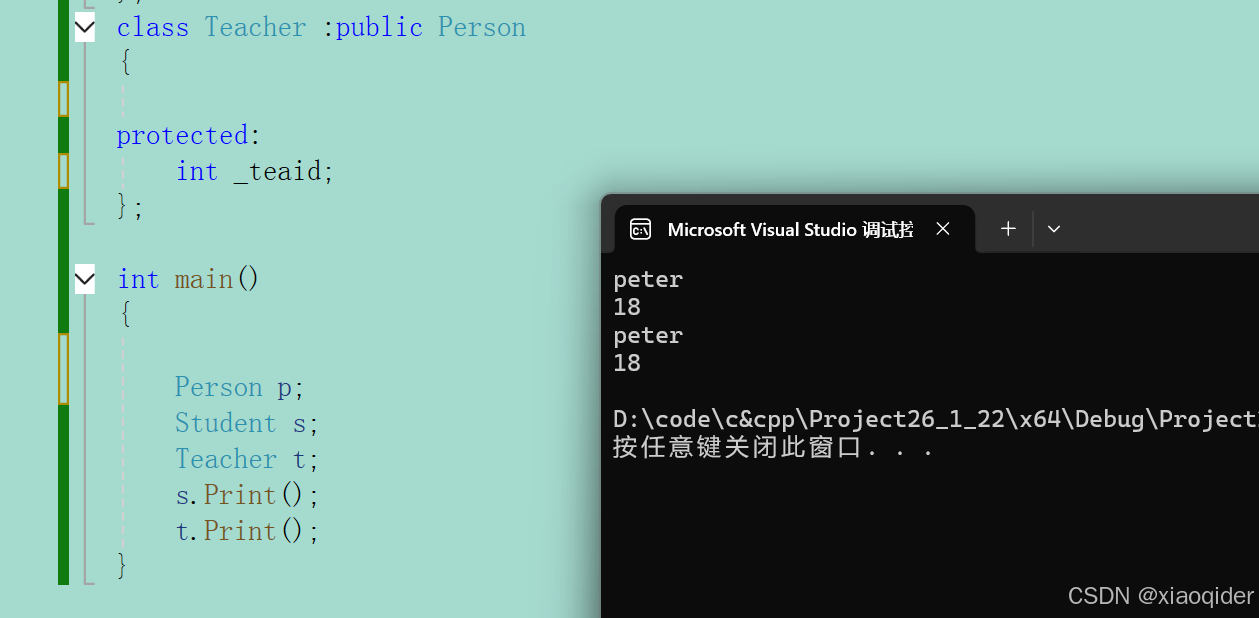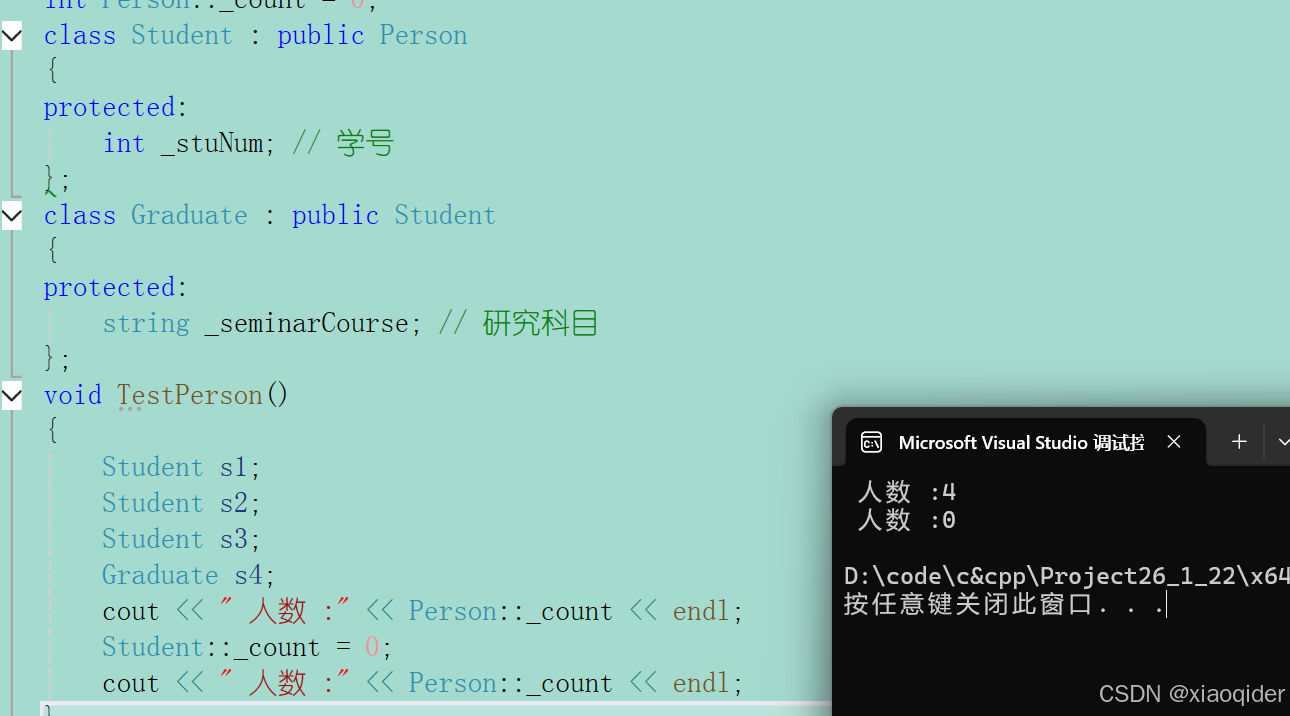 Person:基类(父类)Student:派生类(子类): public Person:继承方式 (public/protected/private)