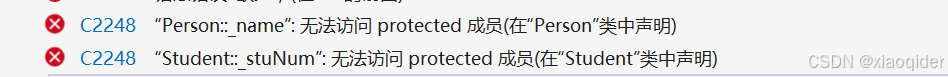 | 基类的private成员 | 在派生类中不可见 | 在派生类中不可见 | 在派生类中不可见 |