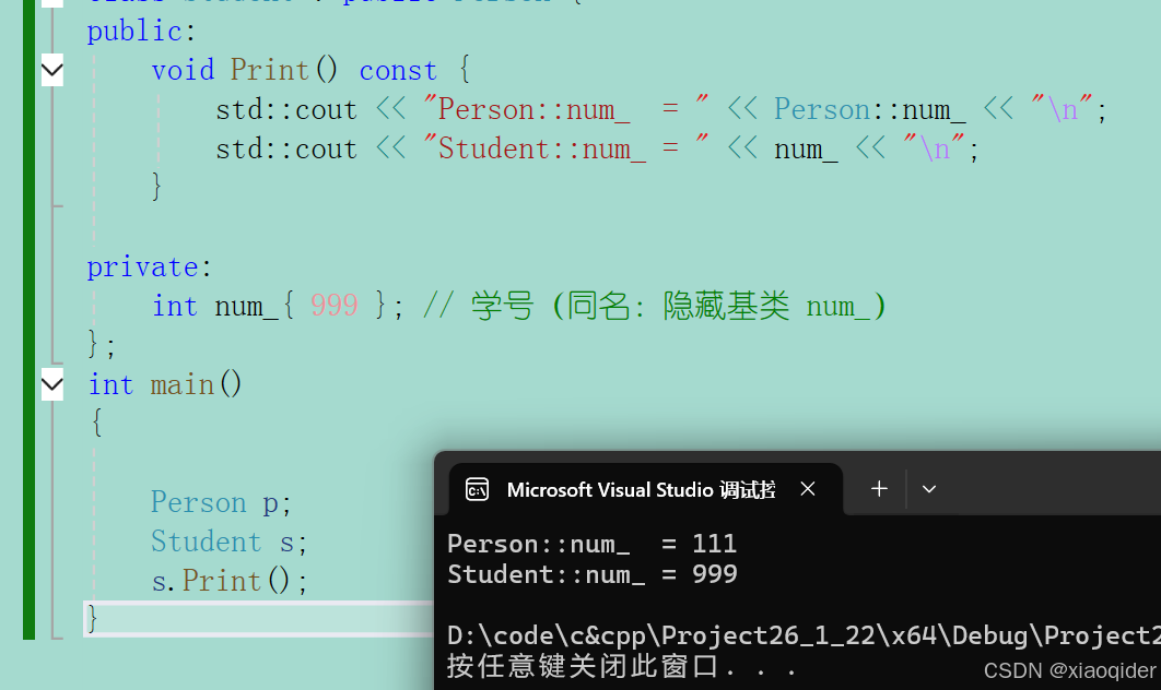 int num_{999}; // 学号(同名:隐藏基类 num_)