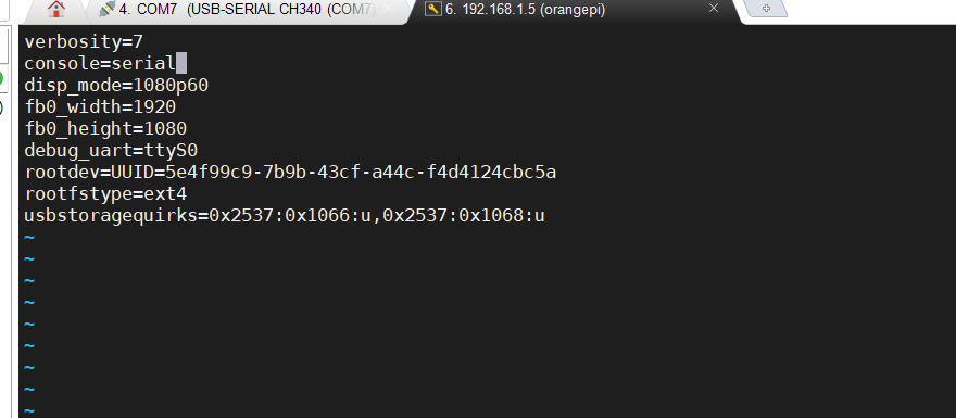 • 通过修稿sudo vi /boot/orangepiEnv.txt文件里面的参数,可以显示内核的日志(在开机的时候)。