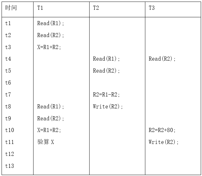 可见, T2与T3间并发操作丢失了事务T2对R2的修改,将这种情况称为丢失修改。""