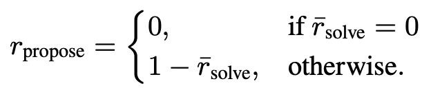 - 提问者奖励:基于"学习进度"(Learning Progress)。如果解题者在某个任务上最初失败但在更新后成功,则认为该任务具有高学习价值,给予提问者高奖励。