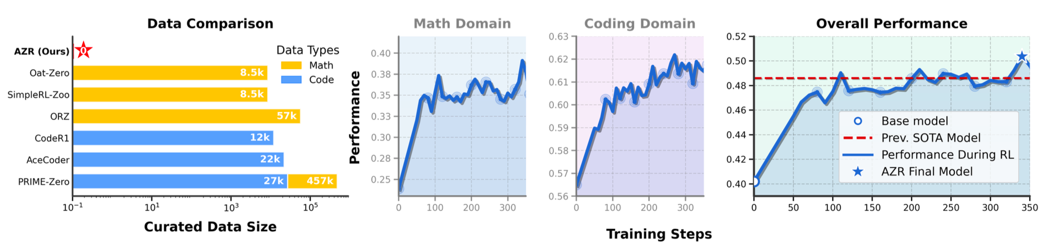 数据零依赖:证明了推理能力的提升可以不依赖于人类预设的问题集。