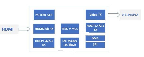 CS5801+AS721 HDMI转DP双向互转实现原理 **:**HDMI → DP 路径:HDMI信号源接入CS5801的输入端,CS5801将其转换为DP 1.4a信号,输出至AS721的DP输入端,AS721再将信号路由至DP输出接口。